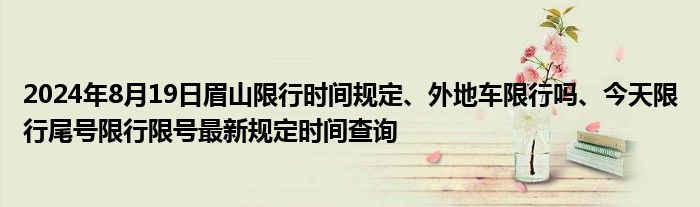今天是2024年08月19日,周一,眉山限行的时间、区域、规定、尾号、外地车限行规则等,因不同的汽车类型而异,点击下方的汽车类型,查看对应的眉山限行政策。