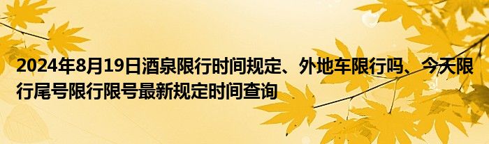 今天是2024年08月19日,周一,酒泉限行的时间、区域、规定、尾号、外地车限行规则等,因不同的汽车类型而异,点击下方的汽车类型,查看对应的酒泉限行政策。