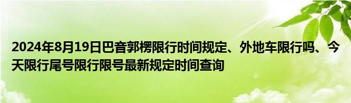 今天是2024年08月19日,周一,巴音郭楞限行的时间、区域、规定、尾号、外地车限行规则等,因不同的汽车类型而异,点击下方的汽车类型,查看对应的巴音郭楞限行政策。