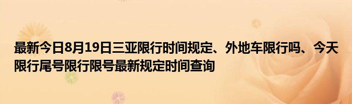 今天是2024年08月19日,周一,三亚限行的时间、区域、规定、尾号、外地车限行规则等,因不同的汽车类型而异,点击下方的汽车类型,查看对应的三亚限行政策。