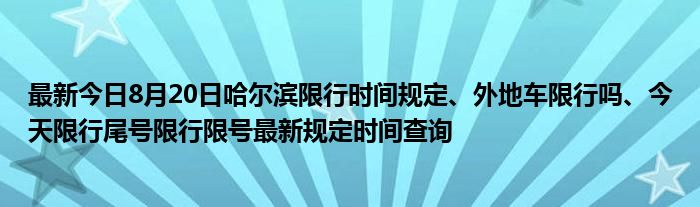 今天是2024年08月20日,周二,哈尔滨限行的时间、区域、规定、尾号、外地车限行规则等,因不同的汽车类型而异,点击下方的汽车类型,查看对应的哈尔滨限行政策。