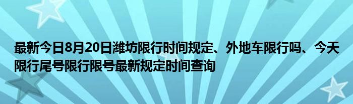 今天是2024年08月20日,周二,潍坊限行的时间、区域、规定、尾号、外地车限行规则等,因不同的汽车类型而异,点击下方的汽车类型,查看对应的潍坊限行政策。