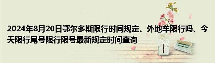 今天是2024年08月20日,周二,鄂尔多斯限行的时间、区域、规定、尾号、外地车限行规则等,因不同的汽车类型而异,点击下方的汽车类型,查看对应的鄂尔多斯限行政策。