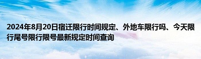 今天是2024年08月20日,周二,宿迁限行的时间、区域、规定、尾号、外地车限行规则等,因不同的汽车类型而异,点击下方的汽车类型,查看对应的宿迁限行政策。