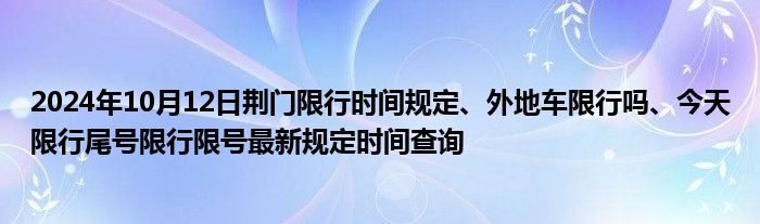 今天是2024年10月12日,周六,荆门限行的时间、区域、规定、尾号、外地车限行规则等,因不同的汽车类型而异,点击下方的汽车类型,查看对应的荆门限行政策。