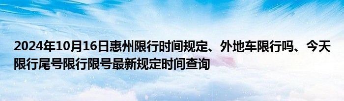 今天是2024年10月16日,周三,惠州限行的时间、区域、规定、尾号、外地车限行规则等,因不同的汽车类型而异,点击下方的汽车类型,查看对应的惠州限行政策。